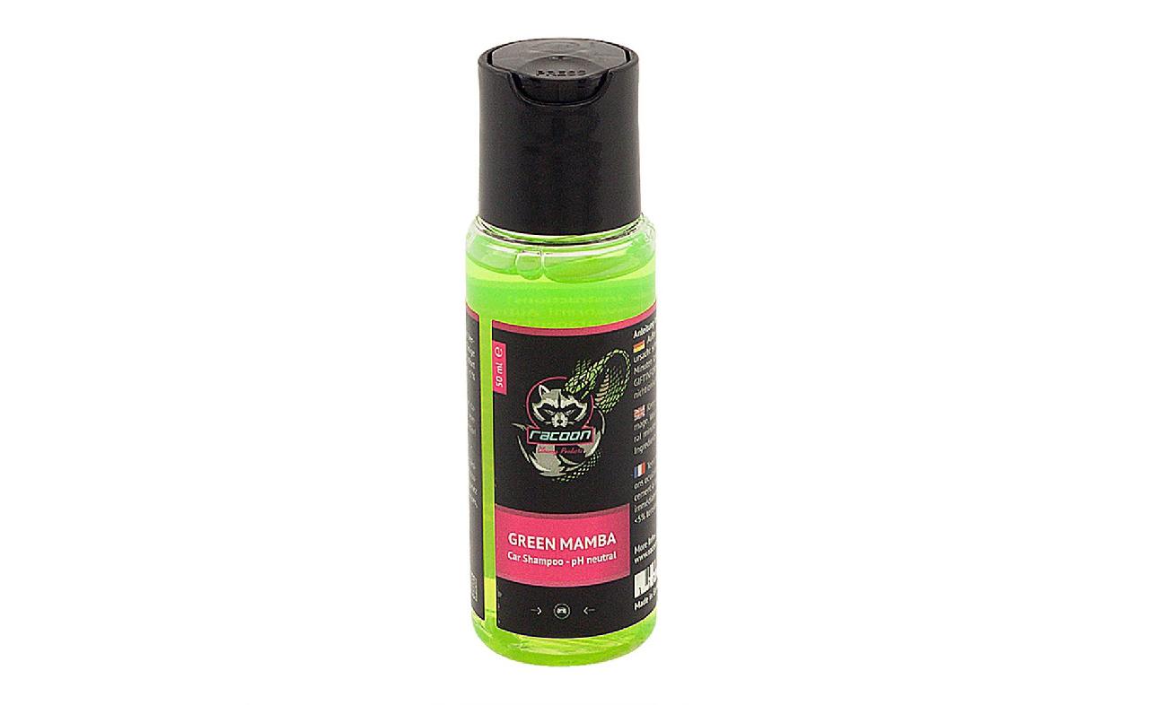 Le nouveau Racoon 'GREEN MAMBA Shampoo', malgré sa formulation douce et à pH neutre, permet un lavage de voiture complet et fiable, sans attaquer la peinture ou les couches de cire existantes et les sealants / coatings de peinture.