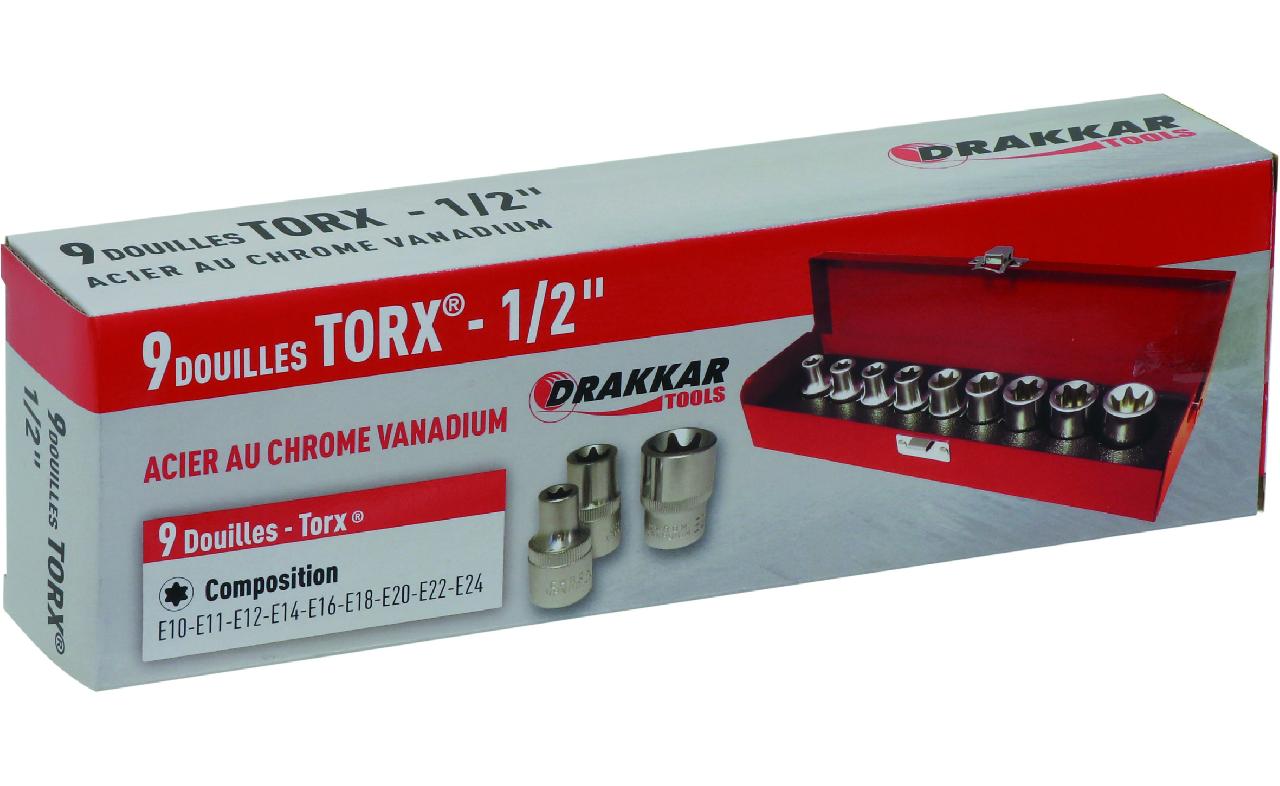 SO10759 : 9 DOUILLES TORX E10E24 1/2" coffret *DT* (10759)
